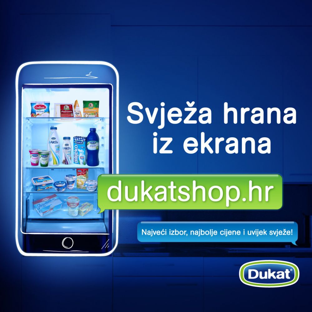 Otvaranjem web trgovine Dukat iznova potvrđuje poziciju inovatora i predvodnika trendova u domaćoj mliječnoj industriji, nudeći svojim kupcima mogućnost kupnje iz udobnosti i sigurnosti vlastitog doma, bez potrebe odlaska u dućan.