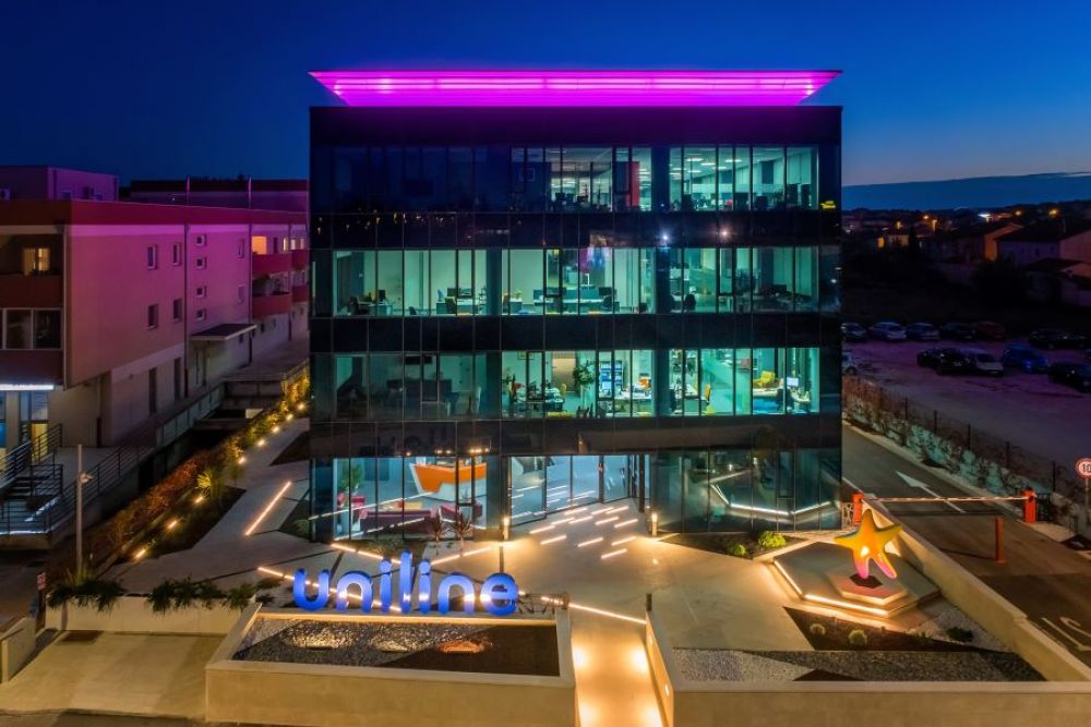 Uniline grupa danas broji više od 150 stalnih zaposlenika, s glavnim poslovnim sjedištem u Puli, preko svojih sastavnica prisutna je na području cijele Hrvatske, a posluje i u Bosni i Hercegovini, Sloveniji, Srbiji, Kini i Južnoj Koreji te ima i predstavništva u Japanu, Tajlandu, lndoneziji i Brazilu.