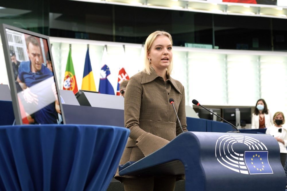 Kći Alekseja Navaljnog, Daria, na prigodnoj svečanosti u Strasbourgu primila je nagradu Saharov Europskog parlamenta u ime svojeg oca koji je u zatvoru.