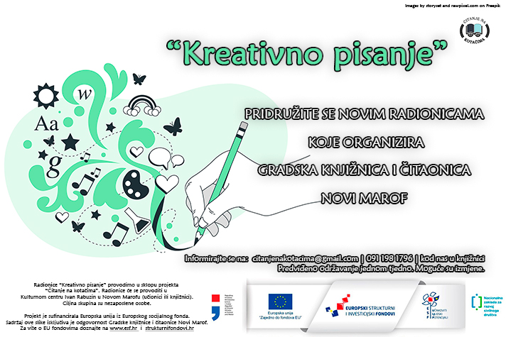 Gradska knjižnica i čitaonica Novi Marof u potrazi je za nezaposlenim osobama koje će sudjelovati u radionicama „Kreativno pisanje”. Radionice se provode u sklopu projekta „Čitanje na kotačima“, a ciljna skupina su nezaposleni s područja Grada Novog Marofa, Općine Breznički Hum i okolnih mjesta, odnosno svi ostali zainteresirani koji žele razviti svoj kreativni potencijal u pisanju priča i pjesama.
