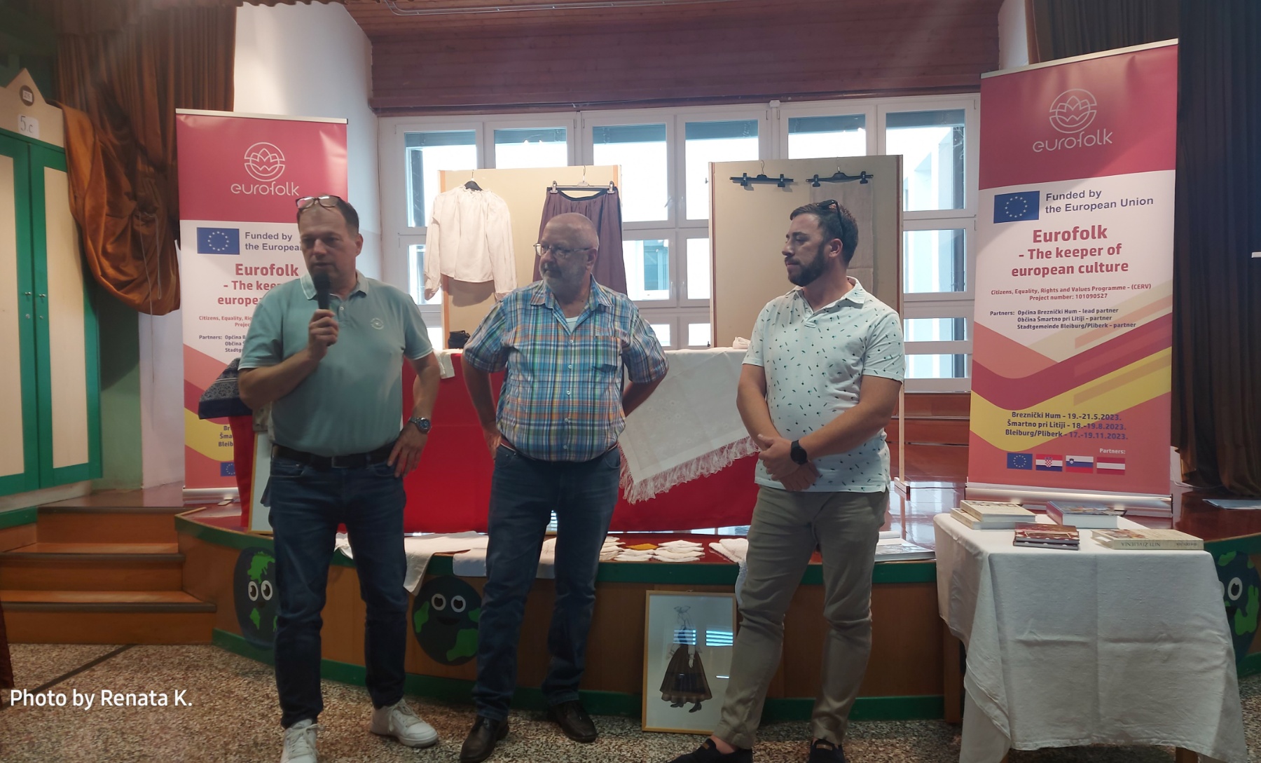 Općina Breznički Hum kao prvi domaćin polovicom svibnja je svojim mještanima i njihovim gostima predstavila svu ljepotu sačuvanog folklornog bogatstva i etnologije središnje i sjeverne Hrvatske. Također su na prvom događanju sve tri općine potpisale sporazum o bratimljenju. Projekt "Eurofolk - čuvar europske kulture" pruža glavne alate za očuvanje europskog identitet kroz promociju i katalogizaciju, te promovira bogatstvo narodnih nošnji i narodnih običaja karakterističnih za Hrvatsku, Sloveniju i Austriju, s posebnim naglaskom na okolicu Brezničkog Huma i Šmartnog pri Litiji te grada Beleiburga - Pliberka. Projekt doprinosi razvoju lokalne svijesti o folklornoj baštini s naglaskom na očuvanje i prezentaciju narodnih nošnji i s ciljem očuvanja i prenošenja tradicije ciljanim skupinama. Također potiče očuvanje folklorne baštine stvaranjem zbirke fotografija povijesne autohtone nošnje sudionika projekta Eurofolk, promociju i nadogradnju fotografija i znanja kroz izložbe, radionice i seminare tijekom provedbe projekta u Hrvatskoj, Sloveniji i Austriji, kao i putem modernih društvenih mreža diljem Europe i Svijeta. Partneri kroz radionice razmjenjuju primjere dobre prakse, te rade na razvoju budućih projekata i promocija, vrijednosti i načela EU kako bi se ta kultura očuvala i unaprijedila. Buduća suradnja bit će osigurana kroz tzv. Twinning sporazume među zemljama partnerima, kako bi se osiguralo da projektne aktivnosti imaju širok pozitivan učinak i da budu vidljive javnosti, a koristit će se za promicanje projektnih aktivnosti i doprinosa EU-a putem alata za komunikaciju na društvenim mrežama (Facebook).