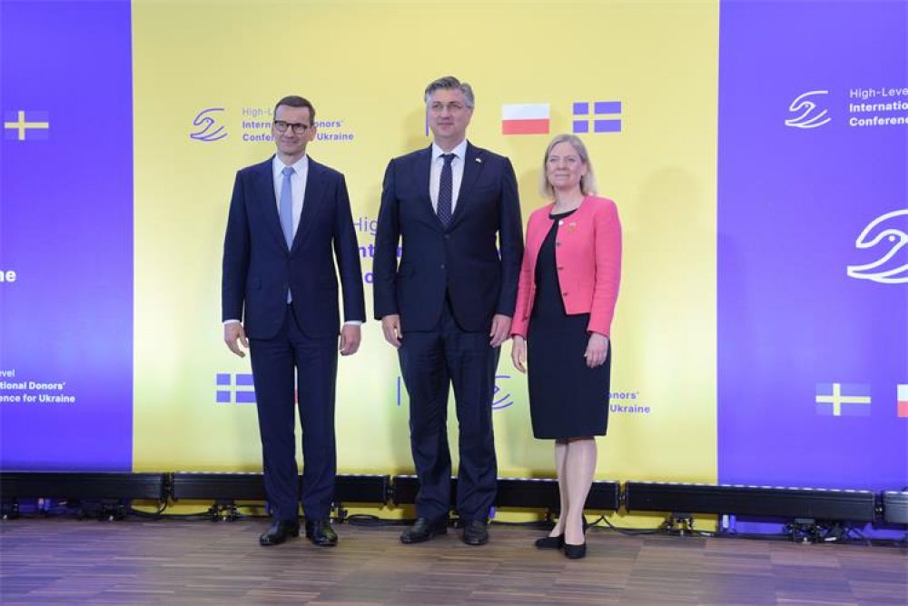 Predsjednik Vlade Andrej Plenković sudjelovao je danas u Varšavi na Međunarodnoj donatorskoj konferenciji za Ukrajinu. U prigodnom obraćanju naglasio je da su sudionici konferencije u Varšavi iskazali prijateljsku solidarnost s Ukrajinom u trenutku kad ruska agresija pogađa ne samo ukrajinske žene, djecu, starije osobe, civile, vojnike, kuće i infrastrukturu već i ukrajinski identitet i slobodu. Istaknuo je da je ruska agresija uzrokovala patnju za 13 milijuna ljudi koji su u kratkom periodu morali napustiti svoje domove te 6 milijuna onih koji su napustili Ukrajinu. Dodao je i da će se posljedice razorne agresije sanirati još godinama.