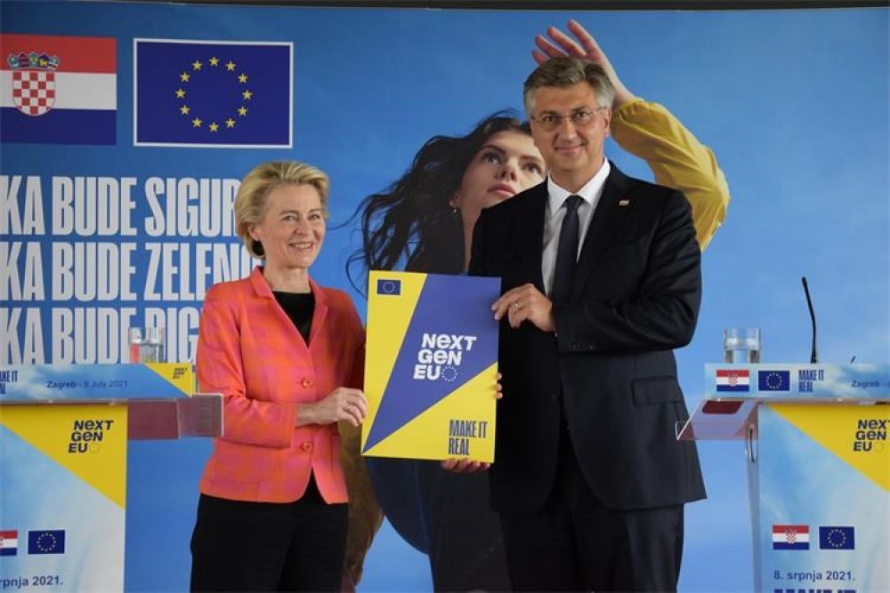 "Imam dobre vijesti za Hrvatsku: čim ostale države članice daju zeleno svjetlo, dobit će 700 milijuna eura bespovratnih sredstava iz programa NextGenerationEU. Hrvatska je ostvarila brz napredak u provedbi reformi i ulaganja iz nacionalnog plana oporavka”, izjavila je predsjednica Komisije Ursula von der Leyen.
