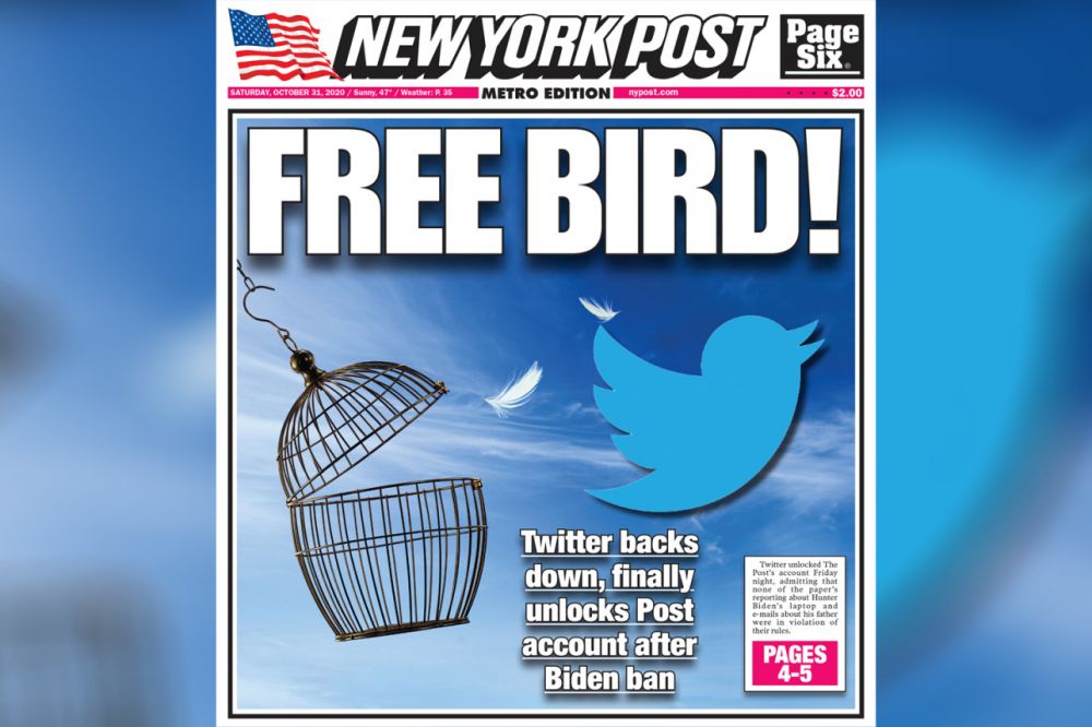 Twitter je u petak prekinuo svoju bitku s New York Postom i reaktivirao njihov račun nakon dvotjednog zastoja u svezi članka o korupcijskoj aferi Huntera Bidena, koji je sin predsjedničkog kandidata Demokrata Joe-a Bidena. Potez je uslijedio nakon što je New York Post odbio zahtjev Twittera da izbriše šest tweetova koji se povezuju s pričama za koje je tvrtka tvrdila da su temeljene na hakiranim informacijama, ali bez ikakvih dokaza.