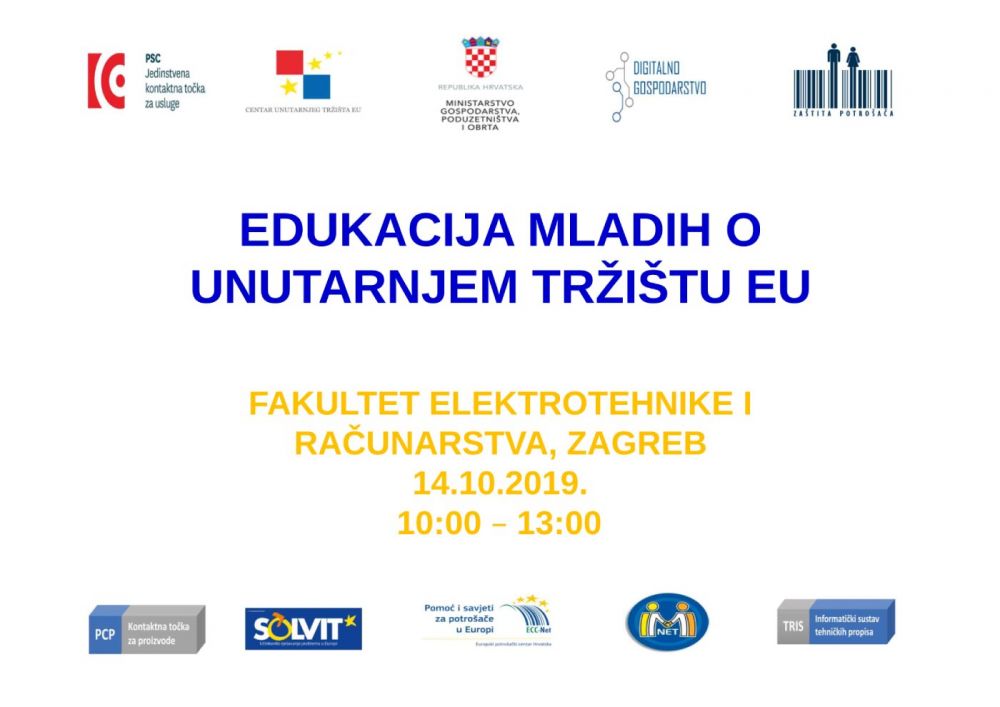 Ministarstvo gospodarstva, poduzetništva i obrta započinje i s edukacijom mladih o mogućnostima koje pruža unutarnje tržište EU-a. Prvo u nizu informiranja i edukacije mladih održava se 14. listopada (od 10 do 13 sati) na Fakultetu elektrotehnike i računarstva (FER). Studenti će se moći informirati o unutarnjem tržištu EU-a, pokretanju poslova i pružanju usluga preko granica Hrvatske, on-line poslovanju, rješavanju poteškoća sa administracijom u drugim državama, tehničkim pitanjima za stavljanje proizvoda na tržište, rješavanju problema potrošača prilikom kupnje proizvoda i pružanju usluga, poslovanju u digitalnom svijetu (eRačuni, ePotpisi i ePečati), mogućnostima koje nudi EU u području doškolovanja, istraživanja, rada i volontiranja i dr.