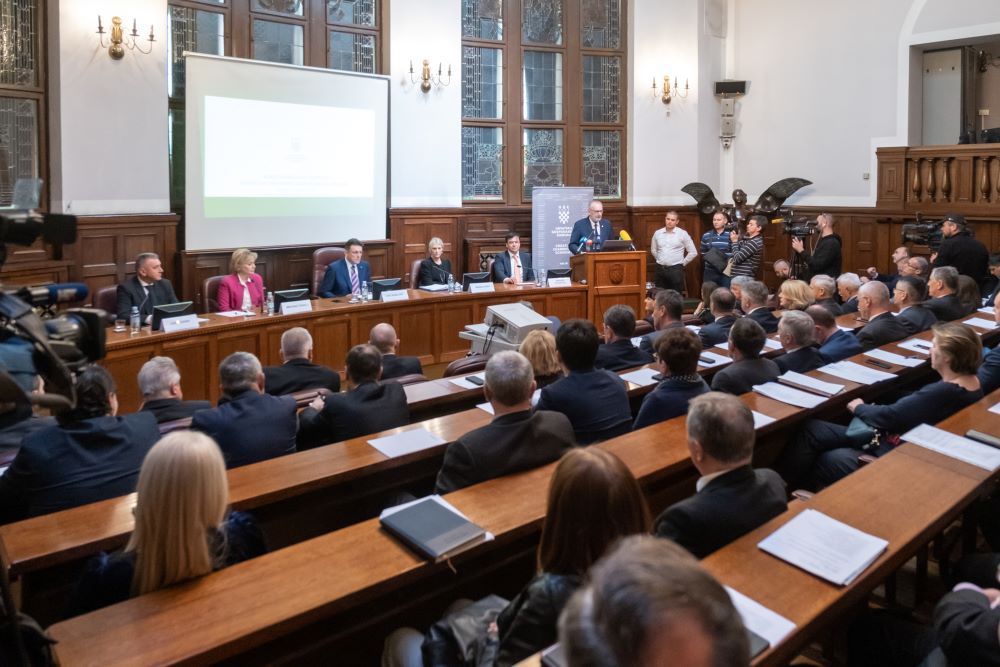 Zbog širenja korona virusa u Hrvatskoj i susjednim zemljama te mogućim utjecajima novonastale situacije na domaće gospodarstvo na inicijativu Hrvatske gospodarske komore održana je sjednica Nacionalnog stožera civilne zaštite RH u HGK.