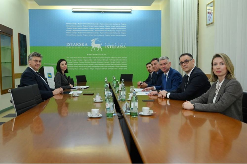 Posjet Istarskoj županiji predsjednik Vlade Plenković završio je u Puli, gdje se sastao sa županom Istarske županije Borisom Miletićem.