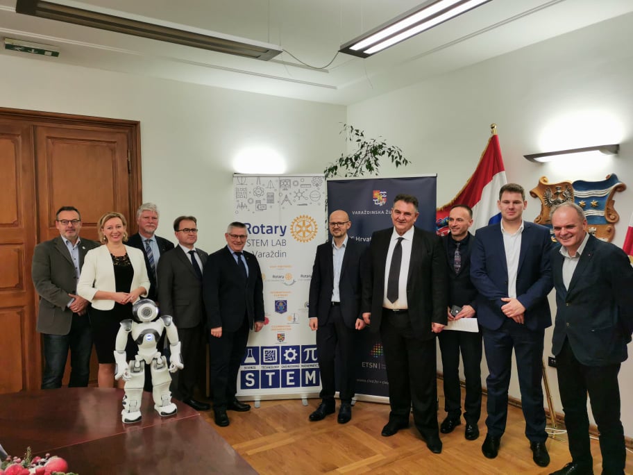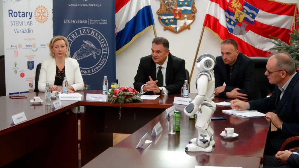 Zahvaljujući varaždinskim rotarijancima, Centru izvrsnosti za nove tehnologije Varaždinske županije pri elektrostrojarskoj školi uskoro stiže STEAM laboratorij. Uz to što već rade s humanoidnim robotima Rudijem i Robijem, učenici i učitelji iz 33 osnovne škole Varaždinske županije uskoro će na raspolaganju imati moderni Laboratorij za STEM područje, za znanost, tehnologiju, inženjerstvo i matematiku. O tome je danas bilo riječi na press konferenciji u Varaždinskoj županiji gdje su uz domaćine, župana Radimira Čačića, zamjenika Tomislava Paljaka i savjetnicu Nataliju Martičević, bili čelni ljudi i predstavnici Rotary klubova, kao i voditelj Europskog centra za darovite Hrvatska Miroslav Huđek te voditelj Centra izvrsnosti za nove tehnologije Krunoslav Grudiček, koji je sa sobom donio ili doveo i Rudija, simpatičnog humanoidnog robota.