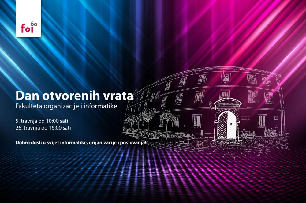 Fakultet organizacije i informatike Sveučilišta u Zagrebu ove će godine u mjesecu travnju održati svoje virtualne Dane otvorenih vrata (DOV). Ovogodišnje izdanje održavat će se online, i to u dva termina tako da mogu svi učenici, i koji imaju dvosmjensku nastavu, neometano prisustvovati.