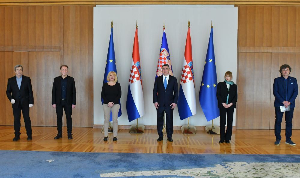 Predsjednik Republike Zoran Milanović primio je izaslanstvo Hrvatske zajednice samostalnih umjetnika u kojem su bili književnik Hrvoje Kovačević, dramski umjetnik Marko Torjanac, prevoditeljica Tatjana Tarbuk i likovna umjetnica Mejra Mujičić.