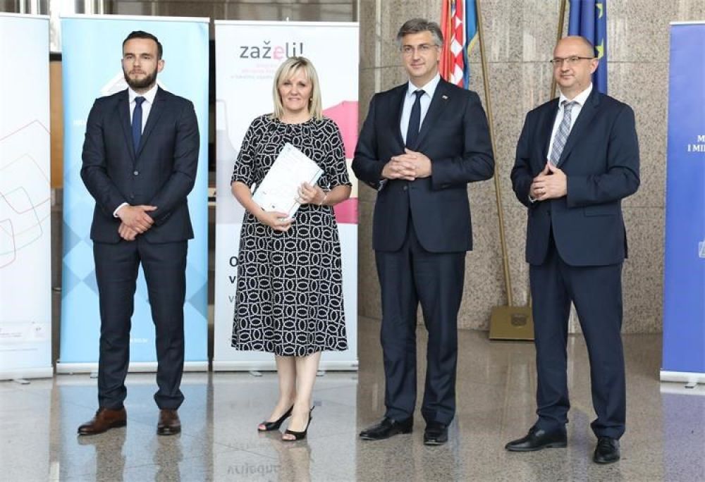 Predsjednik Vlade Andrej Plenković danas je sudjelovao na svečanosti uručenja ugovora o dodjeli bespovratnih sredstava u okviru Poziva „Zaželi-Program zapošljavanja žena-faza II.“, koja se održala u zgradi Nacionalne i sveučilišne knjižnice.Uz predsjednika Vlade svečanom uručenju ugovora nazočio je ministar rada i mirovinskoga sustava Josip Aladrović.Predsjednik Vlade istaknuo je da je „Zaželi-Program zapošljavanja žena“ pokrenut 2017. godine mudro koncipirani projekt, financiran sredstvima Europskog socijalnog fonda, točno u niši koja je bila kritična.