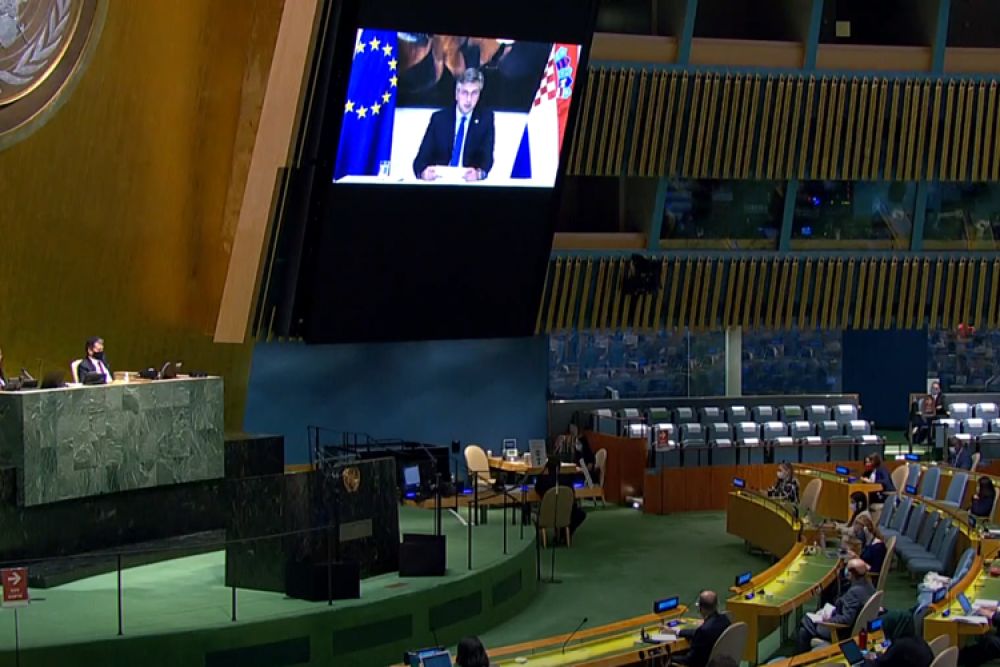 Predsjednik Vlade Andrej Plenković poručio je videolinkom na općoj raspravi 75. zasjedanja Opće skupštine Ujedinjenih naroda da globalni izazovi zahtijevaju snažnu privrženost multilateralizmu te da borbi protiv COVID-19 moramo osnažiti globalni odgovor za očuvanje zdravlja ljudi i brzi gospodarski oporavak.