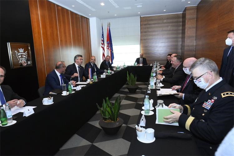Pozdravio je ulogu Hrvatske kao faktora stabilnosti u regiji, ali cijeloj Europi. Pohvalio je i hrvatsko predsjedanje Europskom unijom, kazavši da je Hrvatska omogućila uspješnu koordinaciju SAD-a i Europske unije u borbi protiv pandemije Covida 19. Istaknuo je i zasluge Hrvatske u otvaranju pristupnih pregovora sa Sjevernom Makedonijom i Albanijom. "I jedno i drugo su izvanredna postignuća i treba li bi biti ponosni", poručio je Pompeo. Kazao je da je virtualni Zagrebački sastanak na vrhu EU-a i zapadnog Balkana još jedan korak u promicanju potpunih reformi i stabilnosti u regiji. Dodao je da se razgovaralo i o poticanju reformskog i europskog puta Bosne i Hercegovine. Pomeo se slaže s primjerom Plenkovićem o važnosti učvršćivanja gospodarskih veza između dviju zemalja. "Hrvatska je postigla dobrodošao napredak za važne reforme, uključujući napore Vlade da pojednostavi proces ulaganja", poručio je Pompeo.