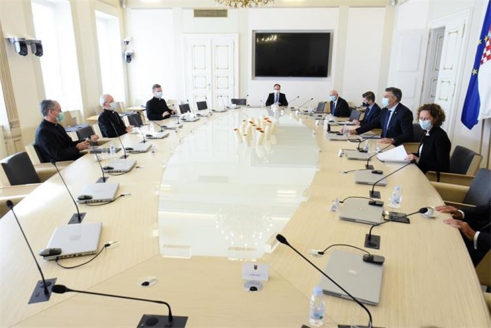 Predsjednik Vlade Andrej Plenković primio je danas u Banskim dvorima predsjednika Hrvatske biskupske konferencije mons. Želimira Puljića, predsjednika Komisije HBK za odnose s državom i člana Stalnog Vijeća Hrvatske biskupske konferencije mons. Dražena Kutlešu i generalnog tajnika HBK vlč. Krunoslava Novaka. Uz predsjednika Vlade bili su potpredsjednik Vlade i ministar financija Zdravko Marić, ministrica kulture i medija i predsjednica Komisije za odnose s vjerskim zajednicama Nina Obuljen Koržinek te ravnatelj Ureda Komisije za odnose s vjerskim zajednicama Šime Jerčić.