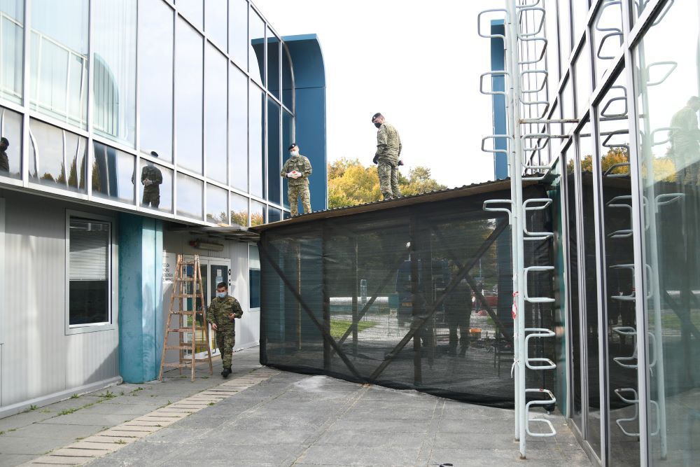U cilju pružanja pomoći lokalnoj zajednici i institucijama civilnog društva u borbi protiv suzbijanja epidemije koranavirusa SARS-CoV-2 pripadnici Hrvatske vojske, Zapovjedništva za potporu u petak, 23. listopada 2020. godine izgradili su dodatni natkriveni prostor tzv. komunikacijski tunel dužine šest metara između objekata bolnice te time pružaju potporu Kliničkoj bolnici Dubrava u Zagrebu.Na izgradnji komunikacijskog tunela bilo je angažirano deset pripadnika Bojne za opću logističku potporu Zapovjedništva za potporu s terenskom vojnom opremom (jedan šleper, kamion 10 t i kombi) i građevinskim materijalom.Spajanje objekata Kliničke bolnice Dubrava uz ranije spojene šatorske smještajne jedinice na jedinstven način, omogućit će u zimskim i nepovoljnim meteorološkim uvjetima nesmetano kretanje bolničkog osoblja u pružanju zdravstvenog zbrinjavanja oboljelih od koronavirusa, prebacivanje oboljelih pacijenata te bolje korištenje svih dostupnih zdravstvenih resursa same bolnice.