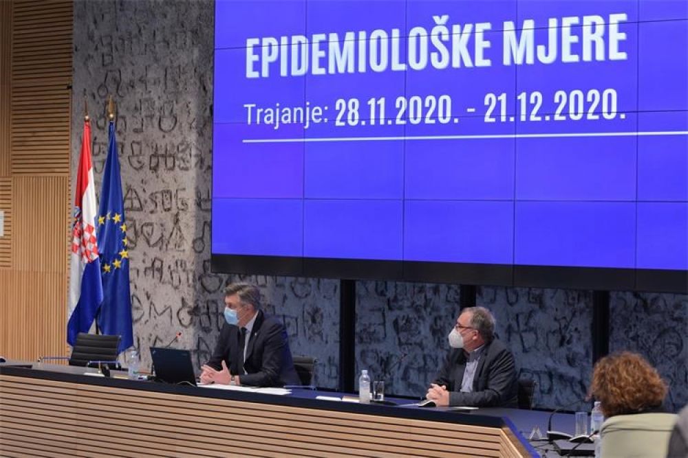 "Cilj nam je osigurati održivost zdravstvenog sustava u kojemu naši liječnici, medicinske sestre i zdravstveni djelatnici ulažu nadljudske napore da izliječe oboljele i spase svaki ljudski život," rekao je, dodavši da će se paralelno s mjerama pojačati kapaciteti testiranja, jer nam je važno da izoliramo svaku zaraženu osobu.Istaknuo je da je poduzeto sve potrebno da se osigura dovoljna količina cjepiva čim bude dostupno te još jednom apelirao na sve da pokažemo osobnu odgovornost. Premijer je najavio da će ministri iz domene gospodarske aktivnosti sutra imati sastanke s različitim udrugama poslodavaca i ostalim predstavnicima gospodarstva na kojima će razgovarati o mjerama kojima ćemo olakšati situaciju onim djelatnostima koje su direktno pogođene, odnosno dotaknute i obuhvaćene ovim mjerama, kako bismo, rekao je Plenković, "pomogli privatnom sektoru kao što smo učinili već tijekom ove godine, na proljeće."