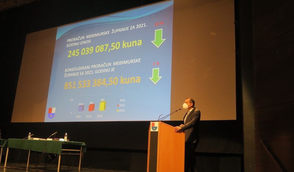 Jednoglasno su usvojene 2. izmjene i dopune Proračuna Međimurske županije koje predlažu povećanje konsolidiranog proračuna za 31 193 950,31 kuna, čime se pokriva manjak iz prethodnih godina i tekuće godine od 5.574.543,02 kuna i 14 758 700,81 kuna, pa je, s povećanjem za 16 435 249,50 kuna, Proračun Međimurske županije 837 844 997,50 kuna. Skupštini Međimurske županije predložen je Proračun Međimurske županije za 2021. godinu s projekcijama Proračuna za 2022. i 2023. godinu i planovima razvojnih programa. U obrazloženju proračuna, župan Matija Posavec istaknuo je kako se proračun donosi u vrlo izazovnim uvjetima izazvanih globalnom pandemijom korona virusa koja je promijenila živote većine naših građana, od kojih su mnogi direktni ili indirektni korisnici proračuna. Prihodovna strana temeljena je na gospodarskim kretanjima, kretanjima na tržištu rada i ostalim projekcijama te poreznoj reformi koja predviđa smanjenje poreznih stopa poreza na dohodak, a koji će imati financijski učinak na proračune jedinica lokalne i regionalne samouprave.Unatoč svim izazovima, Proračun Međimurske županije za 2021.godinu prati kontinuitet politike izvršne vlasti prema kojoj se zadržava visoka socijalna osjetljivost i usmjeravanje proračuna prema građanima s jedne strane, te razvojnu komponentu u realizaciji kapitalnih investicija iz EU fondova koje će se završiti.