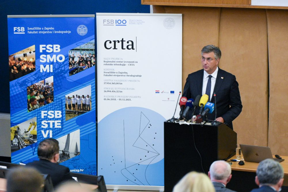 Predsjednik Vlade Andrej Plenković sudjelovao je danas na otvorenju Regionalnog centra izvrsnosti za robotske tehnologije – CRTA, na Fakultetu strojarstva i brodogradnje Sveučilišta u Zagrebu.