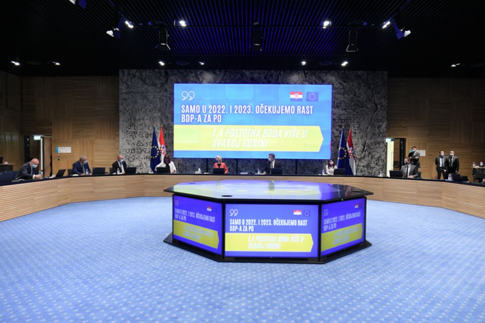 Vlada je danas održala 67. sjednicu na kojoj je, uz predsjednika Vlade i sve ministre, sudjelovala i predsjednica Europske komisije Ursula von der Leyen koja je donijela pozitivnu ocjenu Europske komisije hrvatskog NOPP-a, te potpredsjednica za demokraciju i demografiju Dubravka Šuica.