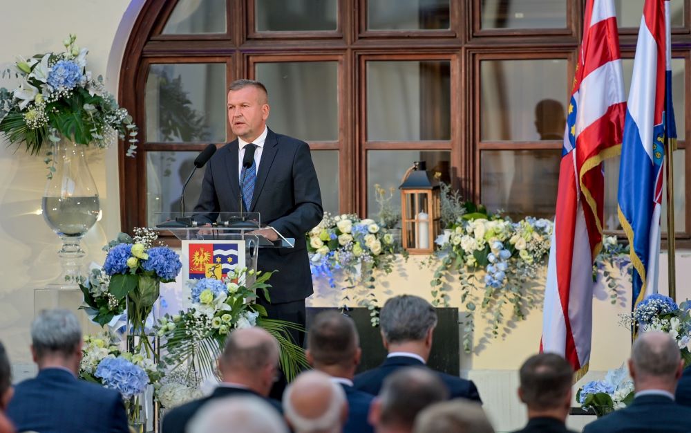 Zajedno s predsjednikom Županijske skupštine Josipom Križanićem, zamjenicom župana Silvijom Zagorec i županijskim vijećnicima, na svečanosti u atriju Županijske palače ugostio je predsjednika Vlade RH Andreja Plenkovića, izaslanika predsjednika Hrvatskog sabora, saborskog zastupnika Damira Habijana, ministra mora, prometa i infrastrukture Olega Butkovića, ministricu regionalnoga razvoja i fondova Europske unije Natašu Tramišak, ministra prostornoga uređenja, graditeljstva i državne imovine Darka Horvata, počasnog građanina Varaždinske županije generala Mladena Markača i brojne druge uzvanike.