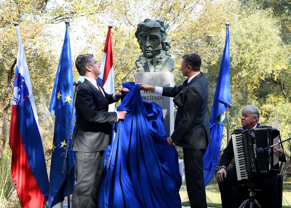 U nastavku dana, predsjednici Milanović i Pahor, na šetnici uz jezero zagrebačkog Bundeka, otkrili su zajedno i spomenik slovenskom pjesniku Francu Prešernu. „Danas prije podne smo u Ljubljani otkrili bistu Ljudevita Gaja, suvremenika Franca Prešerna, jednog od najvećih slovenskih pjesnika, autora one strofe koja je postala službena slovenska himna, kojoj je zajedničko s Hrvatskom, osim što je nastojala u slično vrijeme, što je jako miroljubiva“, poručio je predsjednik Milanović prilikom otkrivanja biste Francu Prešernu.