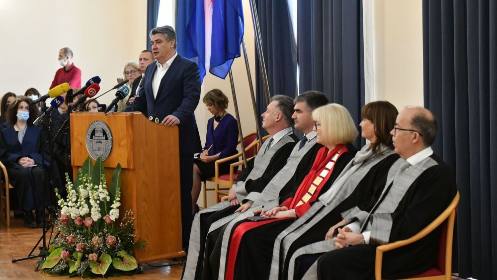 Nadalje, čelnicima Sveučilišta poručio je da budu rigorozni kada je u pitanju akademska korupcija. „Po meni to je najopakiji oblik korupcije jer akademija nije za svakoga. Akademija je jedan prostor u koji se ulazi kada si spreman igrati po pravilima tog prostora, po posebnim pravilima i nema preko reda. Fakultet nije za svakoga, ali je za svakoga tko želi raditi i tko se želi ponašati po rigoroznim pravilima“, pojasnio je Predsjednik.