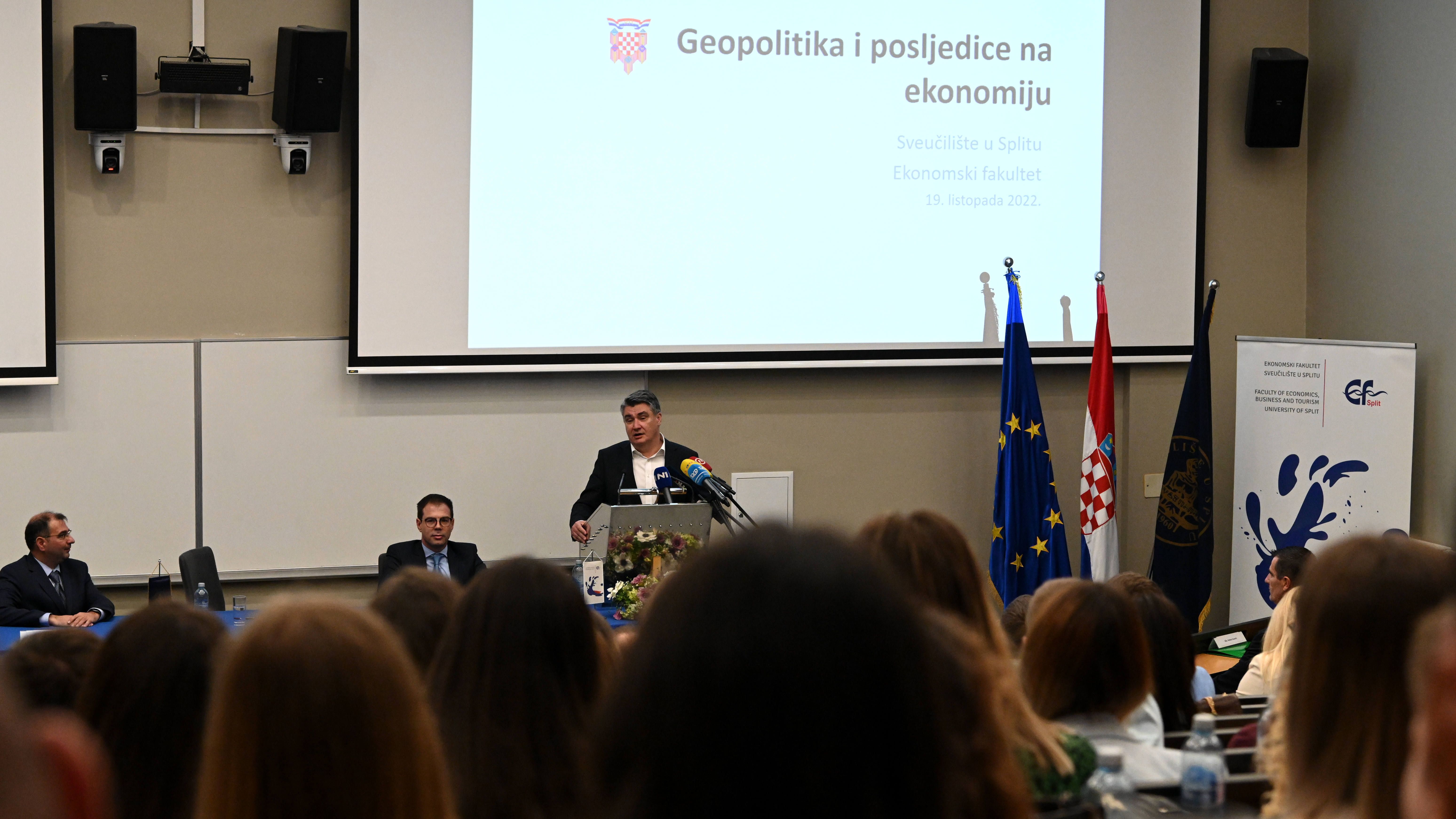 „Pokazatelji hrvatske ekonomije za kratkoročno razdoblje nisu loši. To govorim kao Predsjednik Republike, a ne kao konkurent Vlade, kao netko kome je iskreno stalo da naša priča uspije. Jedino nama je bitno što će biti s ovom zemljom. Drugima ili nije bitno ili ih baš briga. O ekonomskom uspjehu ovisi hoće li se nastaviti ovaj demografski „armagedon“, gdje smo u zadnjih 30 godina izgubili milijun ljudi, što nije samo posljedica rata i Oluje. Ekonomski uspjeh Hrvatske jednako je hrvatska snaga. Bez novca nema ništa, nema neovisnosti, nema oružja, nema načina da obraniš svoj dom, bila to kuća ili država“, poručio je predsjednik Republike Zoran Milanović studenticama i studentima Sveučilišta u Splitu gdje je održao predavanje na temu „Geopolitika i posljedice za ekonomiju“.