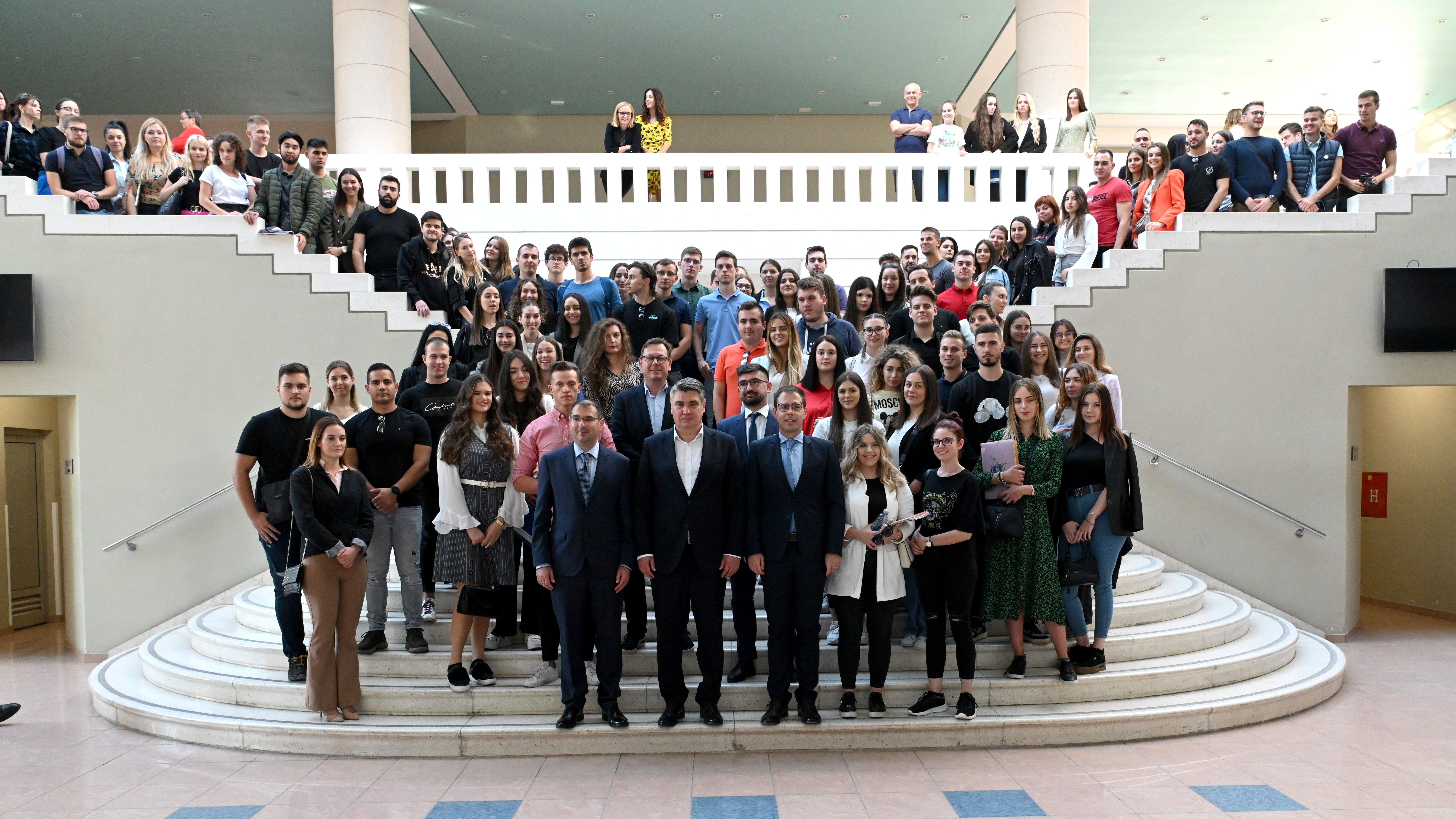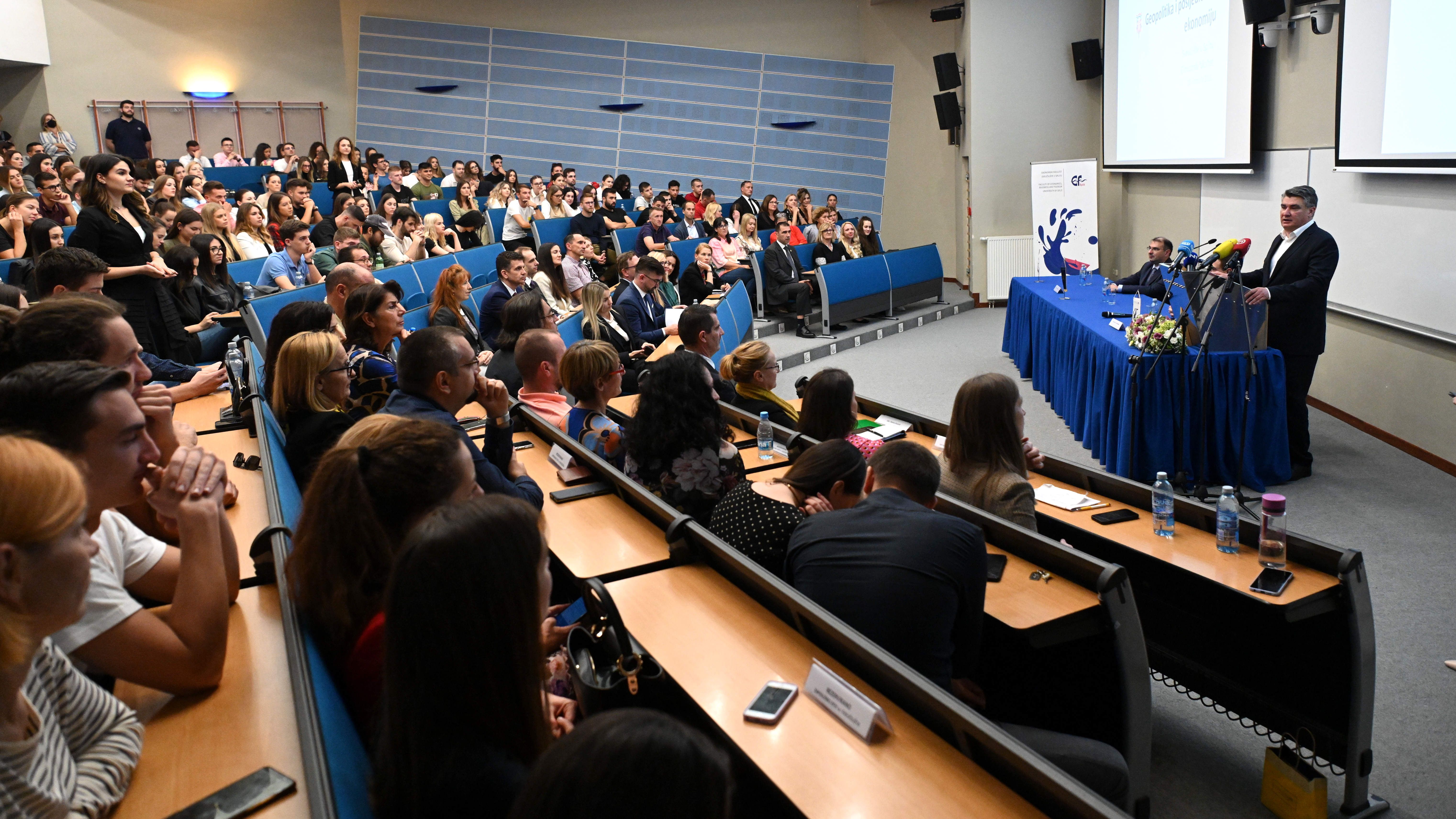 Nakon predavanja, predsjednik Milanović je odgovarao na pitanja studenata. Uz predsjednika Milanovića bio je i posebni savjetnik za ekonomiju Velibor Mačkić.