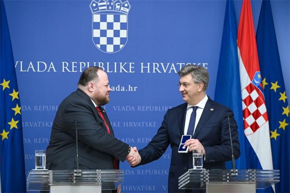 Stefančuk je na tiskovnoj konferenciji s hrvatskim premijerom zahvalio Andreju Plenkoviću na prošlotjednom predivnom govoru u ukrajinskom parlamentu, a svom kolegi Gordanu Jandrokoviću na preuzimanje organizacije skupa u Zagrebu koji će okupiti pedesetak parlamentarnih delegacija, među njima i onu američku predvođenu s Nancy Pelosi.