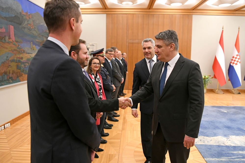 Predsjednik Republike Zoran Milanović primio je saveznog kancelara Republike Austrije Karla Nehammera koji boravi u posjetu Republici Hrvatskoj. Na sastanku u Uredu predsjednika Republike potvrđeni su odlični bilateralni odnosi dviju prijateljskih i partnerskih država. Predsjednik Milanović i savezni kancelar Nehammer razgovarali su o skorom širenju Schengenskog prostora, što je od strateškog značaja za Hrvatsku, pri čemu je predsjednik Milanović zahvalio saveznom kancelaru Nehammeru na potvrdi austrijske podrške za ulazak Hrvatske u Schengen. Razmijenili su i mišljenja o izazovima s kojima su suočene zemlje Europske unije zbog ilegalnih migracija.