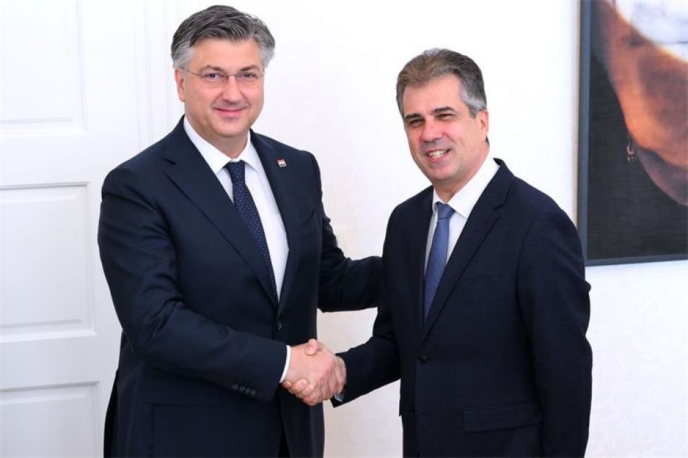 Predsjednik Vlade Andrej Plenković primio je danas ministra vanjskih poslova Države Izrael Elija Cohena, koji boravi u službenom posjetu Republici Hrvatskoj. Predsjednik Vlade Plenković istaknuo je zadovoljstvo jačanjem bilateralnih odnosa te pozdravio namjeru razvoja strateškog partnerstva između dviju država. Razgovaralo se i o sigurnosnim izazovima te suočavanju s posljedicama ruske agresije na Ukrajinu.