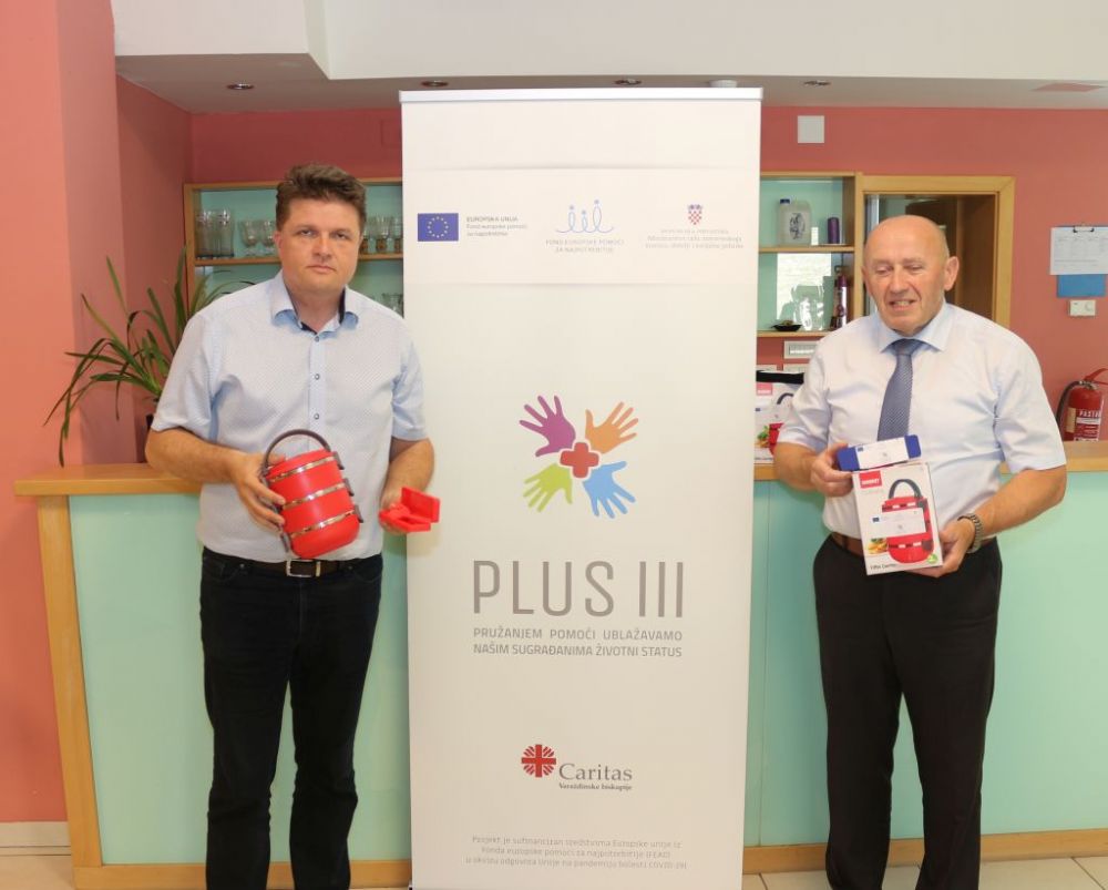 U varaždinskom Caritasu danas, u utorak 20. lipnja 2023. godine korisnicima Pučke kuhinje su predani na upotrebu pribor i posude za podjelu i čuvanje hrane osigurani putem projekta PLUS. Ravnatelj Caritasa Varaždinske biskupije Ante Šola i zamjenik gradonačelnika Grada Varaždina Miroslav Marković prilikom podjele razgovarali su o suradnji Grada Varaždina s Caritasom na projektu PLUS koja je neophodna kako bi se što više pomoglo korisnicima te osigurale kvalitetne namirnice za obroke.