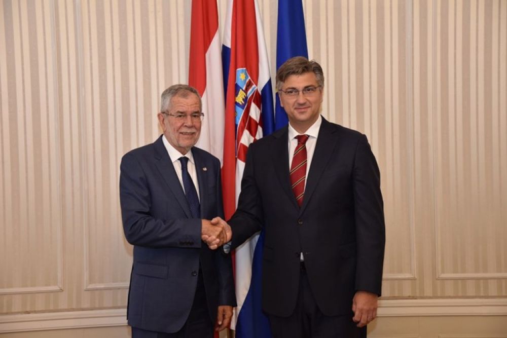 Predsjednik Vlade Andrej Plenković primio je danas u Banskim dvorima saveznog predsjednika Republike Austrije Alexandera Van der Bellena. Plenković je naglasio da dvije zemlje imaju izvrsne političke i gospodarske odnose, a Austrija je drugi najveći investitor u Hrvatsku.Govoreći o suradnji dviju zemalja u okviru Europske unije, predsjednik Van der Bellen se osvrnuo na prioritete austrijskog predsjedanja Vijećem EU-a te sprječavanje ilegalnih migracija, kao i na najnovije događaje u zemljama jugoistočne Europe i važnost stabilnosti regije.
