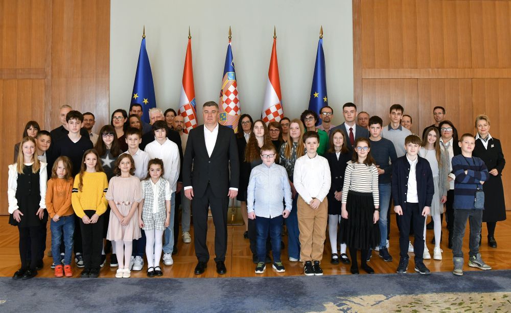 Predsjednik Republike Zoran Milanović ugostio je danas učenice i učenike okupljene u Udruzi za darovitost DAR, a povodom Dana darovitih učenika koji se od 2011. godine u školama obilježava 21. ožujka.FOTO: Ured predsjednika Republike Hrvatske / Tomislav Bušljeta.