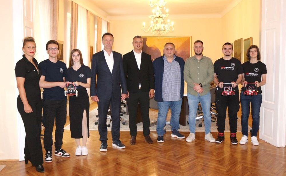 Gradonačelnik Grada Varaždina dr. sc. Neven Bosilj u srijedu je u Gradskoj vijećnici održao prijem za varaždinske robotičare Franka Prikratkog, Marina Rođaka, Vinku Fištrek i Patriciju Radiković te njihove mentore Ivicu Kolarića, Ivana Kolarića, Marija Bencuna i Željka Posavca, timove koji su osvojili zlatne medalje na prestižnom natjecanju RoboCup Americas 2025., nedavno održanom u Pensilvaniji. Hrvatsku su na natjecanju predstavljala čak dva tima iz Varaždina i jedan iz Karlovca. Između 250 natjecatelja, tri hrvatske ekipe osvojile su čak tri zlatne medalje i tako ponovno dokazale da se nalaze u samom vrhu svjetske robotike.