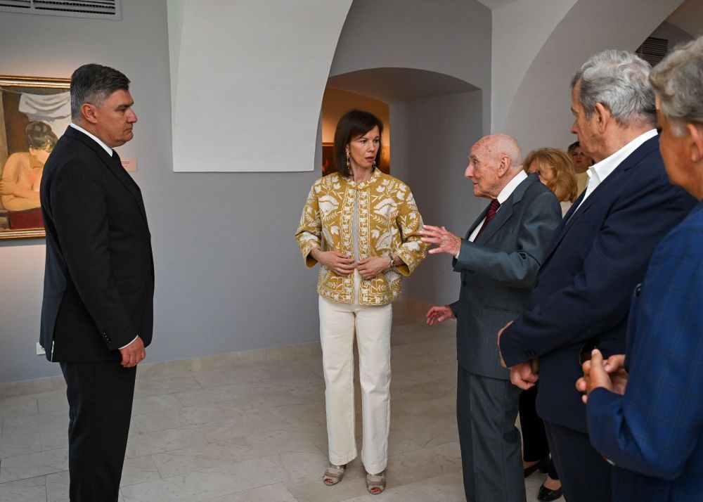 U pratnji ravnatelja zagrebačke Galerije Klovićevi dvori Antonia Picukarića i kustosice izložbe Petre Vugrinec te vlasnika zbirke Jelve i Borisa Kviza, predsjednik Milanović razgledao je jednu je od najrespektabilnijih, a javnosti nepoznatih zbirki modernog hrvatskog slikarstva.