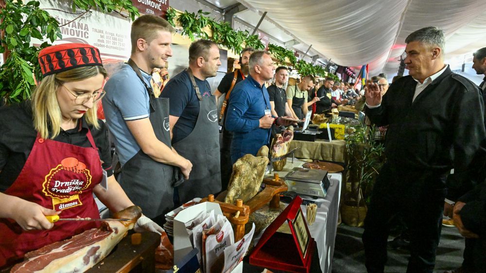 U pratnji domaćina i organizatora Sajma, načelnika Općine Tinjan Gorana Hrvatina i predsjednika Općinskog vijeća Igora Antolovića, predsjednik Milanović obišao je izlagače ovogodišnjeg Internacionalnog sajma pršuta koji se održava od 17. do 19. listopada. Na njemu se predstavlja pedesetak proizvođača pršuta iz svih dijelova Hrvatske te iz Italije, Slovenije i Španjolske. Uz njih, sa svojim proizvodima promoviraju se i drugi lokalni proizvođači, a ne samo pršutari pa su na Sajmu izloženi i sirevi raznih proizvođača, potom vina, ali i niz drugih proizvoda.