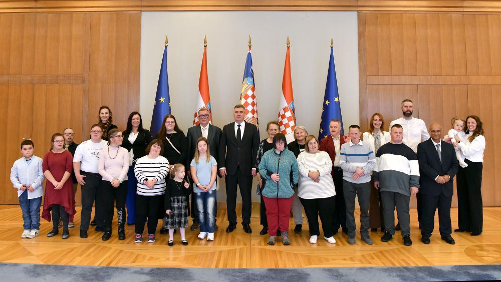 Predsjednik Republike Zoran Milanović primio je danas djelatnike Centra za rehabilitaciju Down syndrom centar Pula, korisnike tog centra i njihove roditelje.