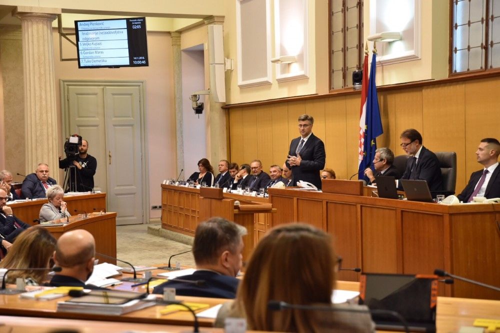 Aktualnim prijepodnevom Hrvatski sabor je 14. studenoga započeo svoju 10. sjednicu koja će trajati do ustavne stanke, 15 prosinca. Predsjednik Vlade Andrej Plenković i članovi Vlade odgovorili su na 38 pitanja zastupnika.Odgovarajući na pitanje zastupnika Davora Bernardića zna li "gdje je glavni državni odvjetnik, je li radi i dolazi na posao" te aferama koje se zadnjih mjeseci spominju u medijima, predsjednik Vlade je istaknuo da je i on sam bio predmet i žrtva fabriciranja lažnih SMS-ova."Svašta ste nabrojili u tiradama. Što se tiče vaše teze o 'kupovini mandata', ona je neistinita i patetična. Ljudi, očito duboko nezadovoljni vašim radom, smjerom i načinom na koji funkcionira SDP, odlaze iz stranke. Oni, na način na koji to komuniciraju, odlaze svojom voljom, demonstriraju nezadovoljstvo prema Vama. Odabir gdje će ti ljudi, sa svojim temeljem Ustava neopozivim mandatom, to je njihova stvar. Nitko od njih nije došao u HDZ. Baš nitko", kazao je.