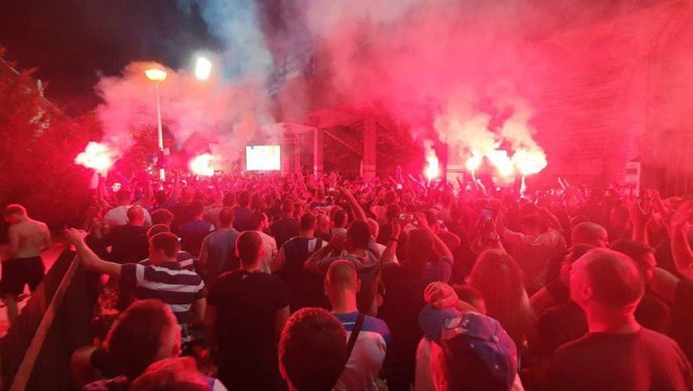 Iz navedene skupine jedna osoba je privedena u službene prostorije, uz uporabu sredstva prisile tjelesne snage, te se nad njom provodi kriminalističko istraživanje zbog sumnje u počinjenje prekršaja iz Zakona o sprječavanju nereda na športskim natjecanjima.