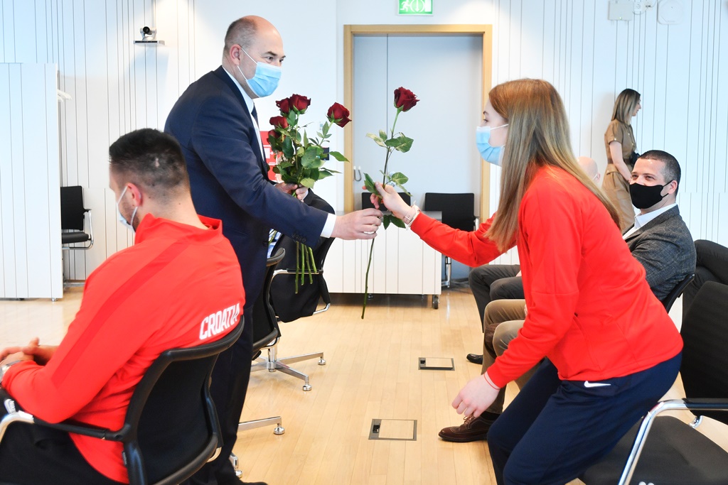 · Fotografija 3: Frane Barbarić, predsjednik Uprave HEP-a daruje ružu članici hrvatske atletske reprezentacije povodom Međunarodnog dana žena