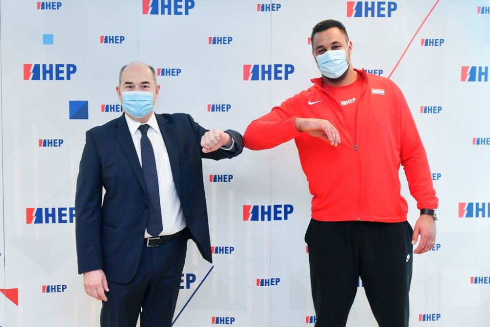 Fotografija naslovna: Frane Barbarić, predsjednik Uprave HEP-a i Filip Mihaljević, osvajač brončane medalje u bacanju kugle