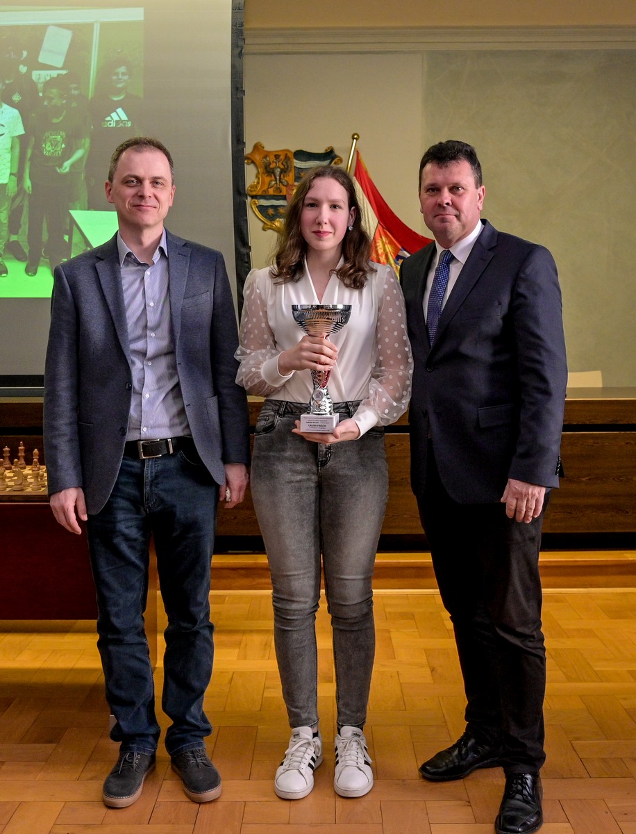 U Skupštinskoj dvorani Županijske palače danas su uručeni pehari najboljima na PUŽ-u – Pojedinačnom županijskom prvenstvu u šahu za osnovne i srednje škole u školskoj godini 2022./23. Pehari su dodijeljene u tri kategorije, za niže i više razrede, te srednje škole, a uručili su im predsjednik Županijske skupštine dr. sc. Josip Križanić i predsjednik Šahovskog saveza Varaždinske županije i voditelj Centra izvrsnosti za šah Željko Matkun. Uručenju nagrada prisustvovali su pročelnik Upravnog odjela za prosvjetu, kulturu i sport dr. sc. Miroslav Huđek i zamjenica pročelnika Sanja Herceg.