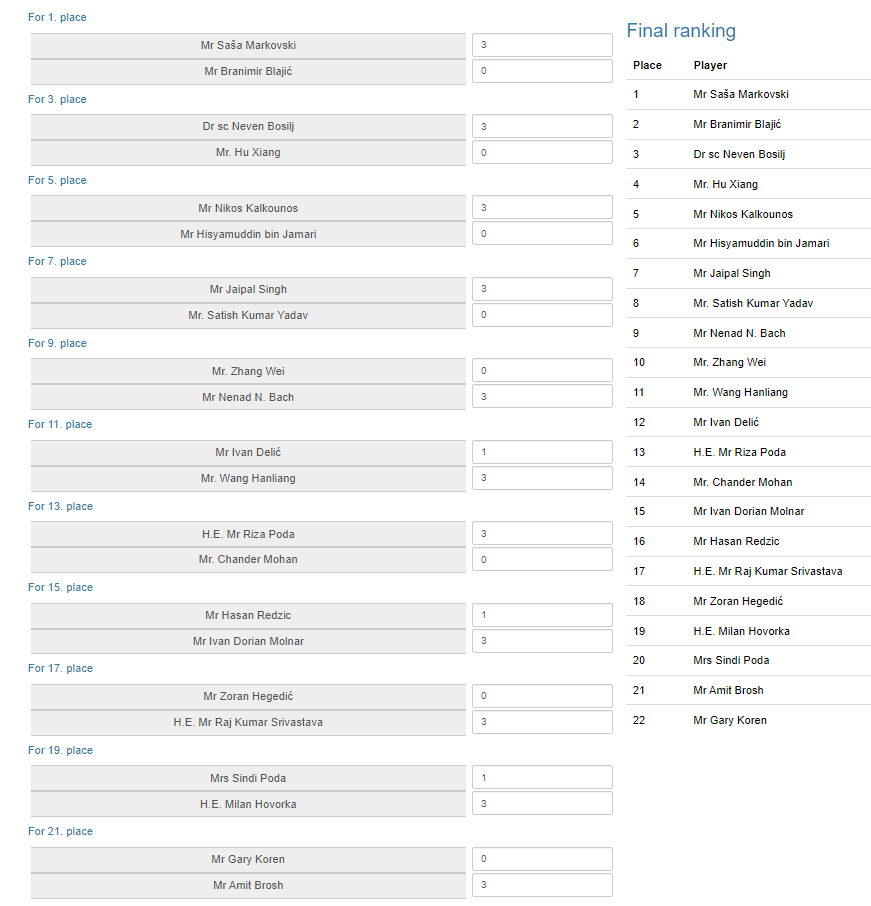 Veleposlanstvo Indije, u suradnji sa Stolnoteniskim klubom STARR, bilo je domaćin Međunarodnog stolnotenisko-diplomatskog Turnira, održanog u STC Zagreb unutar Zagrebačkog velesajma. Na turniru je sudjelovalo 11 diplomata iz 8 različitih zemalja i 11 gostiju koji su odigrali 63 partije stolnog tenisa unutar 3 sata. Ponosni pobjednik međunarodnog stolnoteniskog turnira je Saša Markovski, djelatnik grada Raba, drugo mjesto pripalo je Branimiru Blajiću, voditelju tvrtke Best Hospitality Solutions, dok je treće mjesto osvojio dr Neven Bosilj, gradonačelnik grada Varaždina.