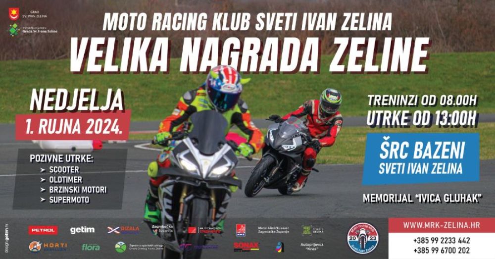 Pozivamo sve entuzijaste i ljubitelje motosporta da se pridruže ovom jedinstvenom događaju, moto utrci „Velika nagrada Zeline“ koja starta u nedjelju, 01. rujna 2024. od 8:00 sati s treninzima, a utrke počinju od 13 sati.
