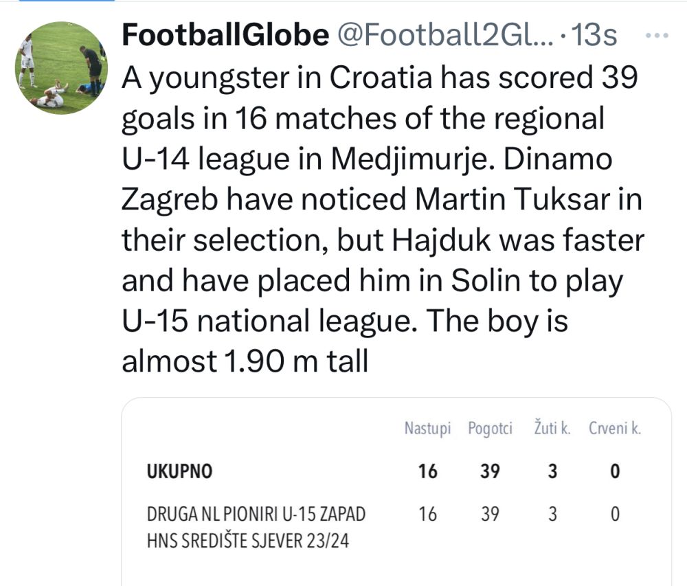 Stranci stalno traže nogometne talente po Hrvatskoj, pa ih je tom logikom zaintrigirao dječak koji je u 16 utakmica pionirske lige zabio 39 golova. Mladog Međimurca Martina Tuksara u svome je selekcijskom procesu zamijetio Dinamo, ali Hajduk je bio brži i izgleda da su ga već “parkirali” u Solin kako bi tamo igrao prvu hrvatsku ligu kadeta. Rođen 2009. Martin Tuksar jer već visok skoro 1.90 m i uz pravilan rad mogao bi se razviti u zanimljivog centarfora.