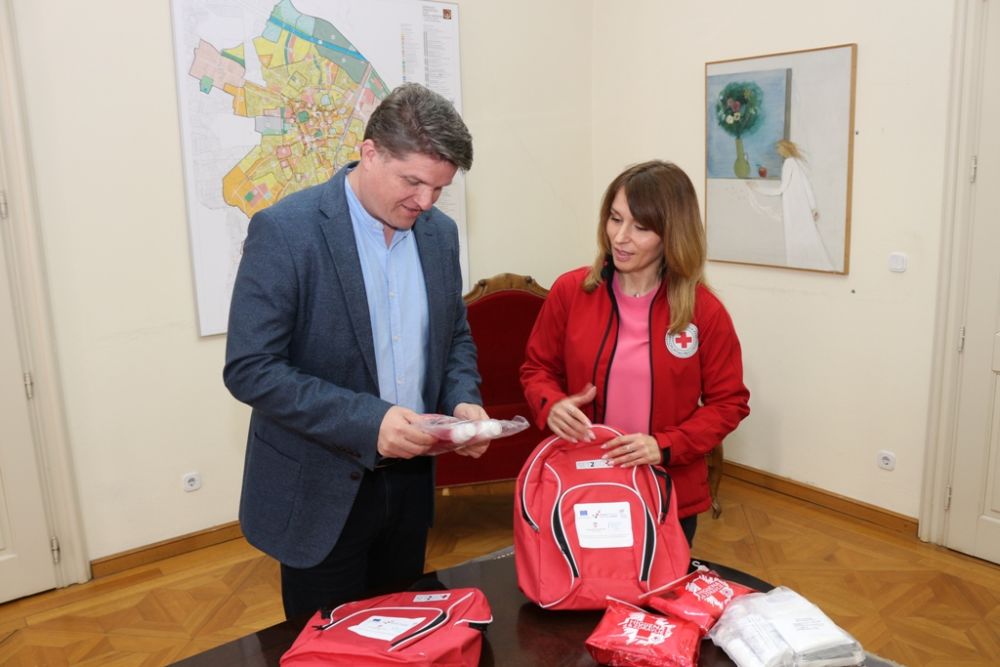 Tom prilikom uručila mu je dva ruksaka sa setom za prvu pomoć te Set2go ruksak u kojem se nalazi osnovni komplet za slučaj izvanredne situacije ili katastrofe.