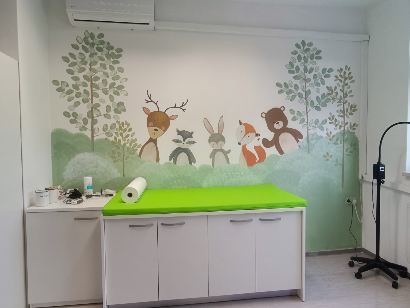 Mališane očekuje iznenađenje koje im je priredila umjetnica Anita Husnjak, poznata upravo po muralima: zidove čekaonice i same ordinacije oslikala je motivima šume i životinjica, čime je postignuta estetizacija i humanizacija cjelokupnog prostora.
