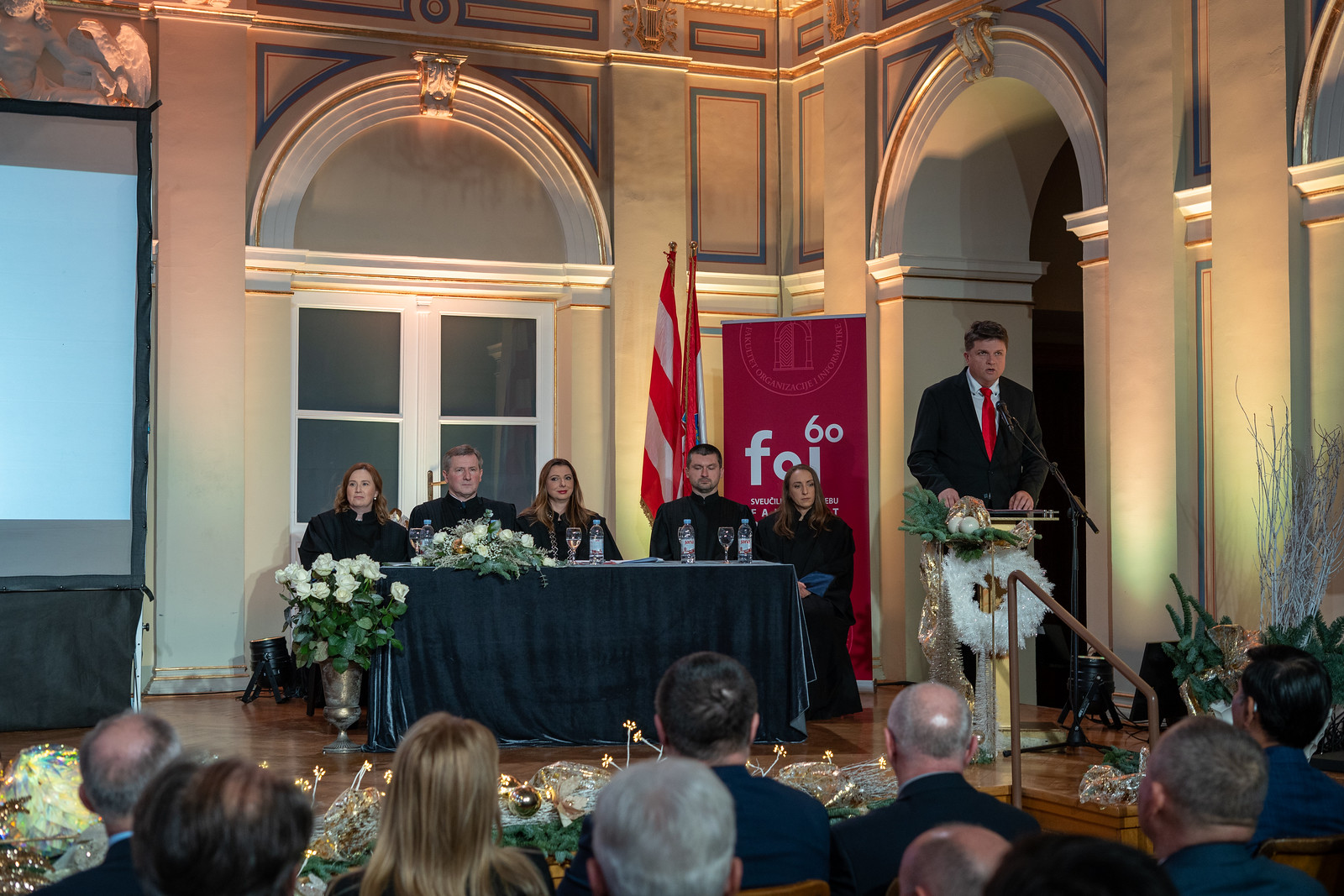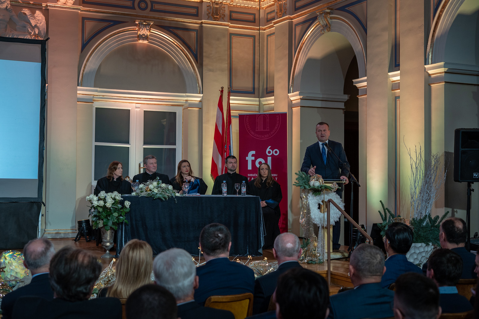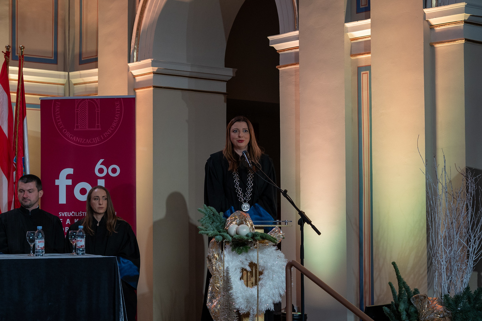 „Kada je prije 60 godina osnovan FOI u Varaždinu, bio je to gotovo revolucionaran iskorak u tadašnjem vremenu, razvijajući nove, moderne i napredne tehnologije. FOI svojim primjerom nastavlja bogatu tradiciju našeg najstarijeg i najvećeg hrvatskog sveučilišta“ – naglasila je izaslanica predsjednika Republike Hrvatske i savjetnica predsjednika za odgoj i obrazovanje Jadranka Žarković.