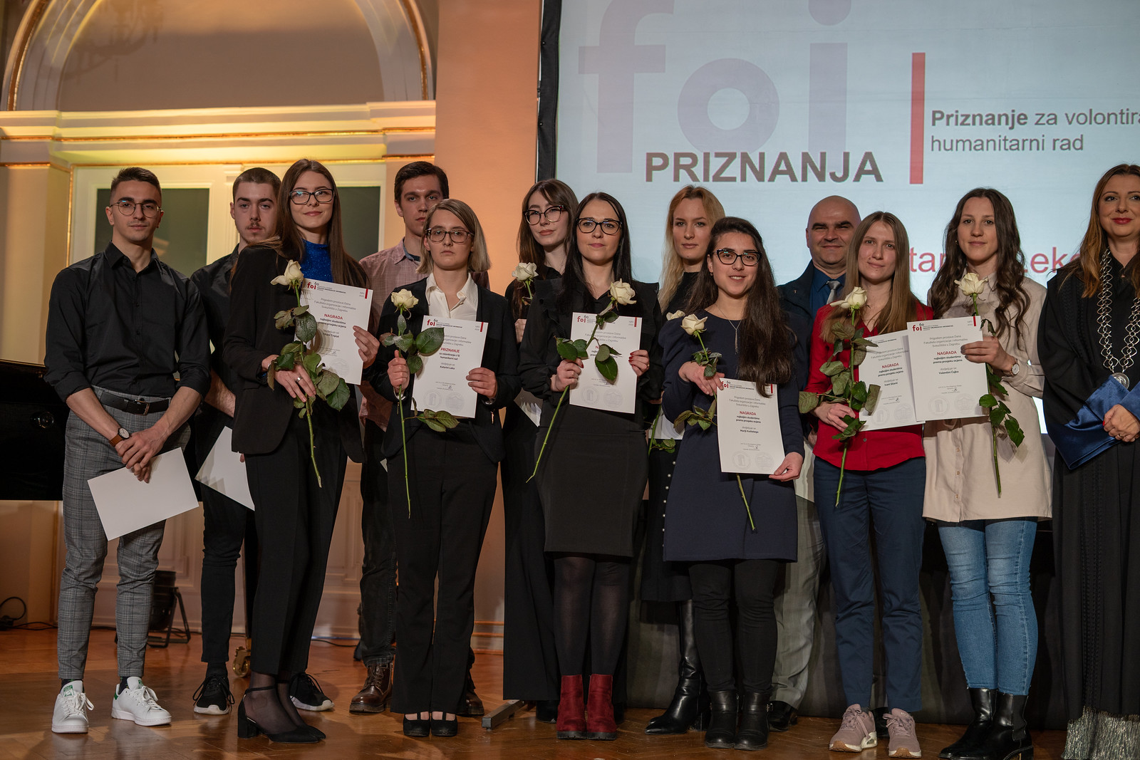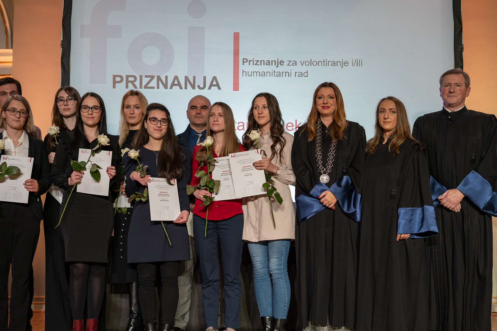 Priznanje FOI-ja uručeno je prof. dr. sc. Nini Begičević Ređep i izv. prof. dr. sc. Ivanu Magdaleniću za najbolji znanstveni rad u časopisu s najvećim pokazateljem citiranosti časopisa (JCI), a priznanje za uspješnu poslovnu suradnju s Fakultetom dobile su partnerske tvrtke FOI-ja: Arbona, CRATIS, CROZ, Diginet Software, IBM iX, Ekobit, Factory X, FINA, IGEA, Infinum, Infodom, Mobilisis, Northwest Agency, Oracle, Point Visible i SPECK. Zahvalnicu za 10 godina rada Centra za podršku studentima i razvoj karijera te suradnje s IT partnerima primila je voditeljica Centra doc. dr. sc. Katarina Pažur Aničić.